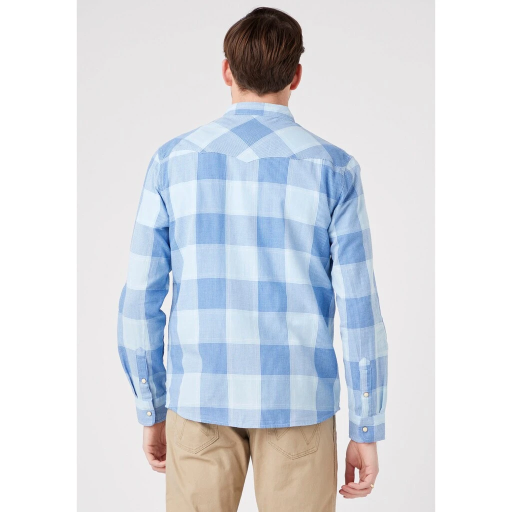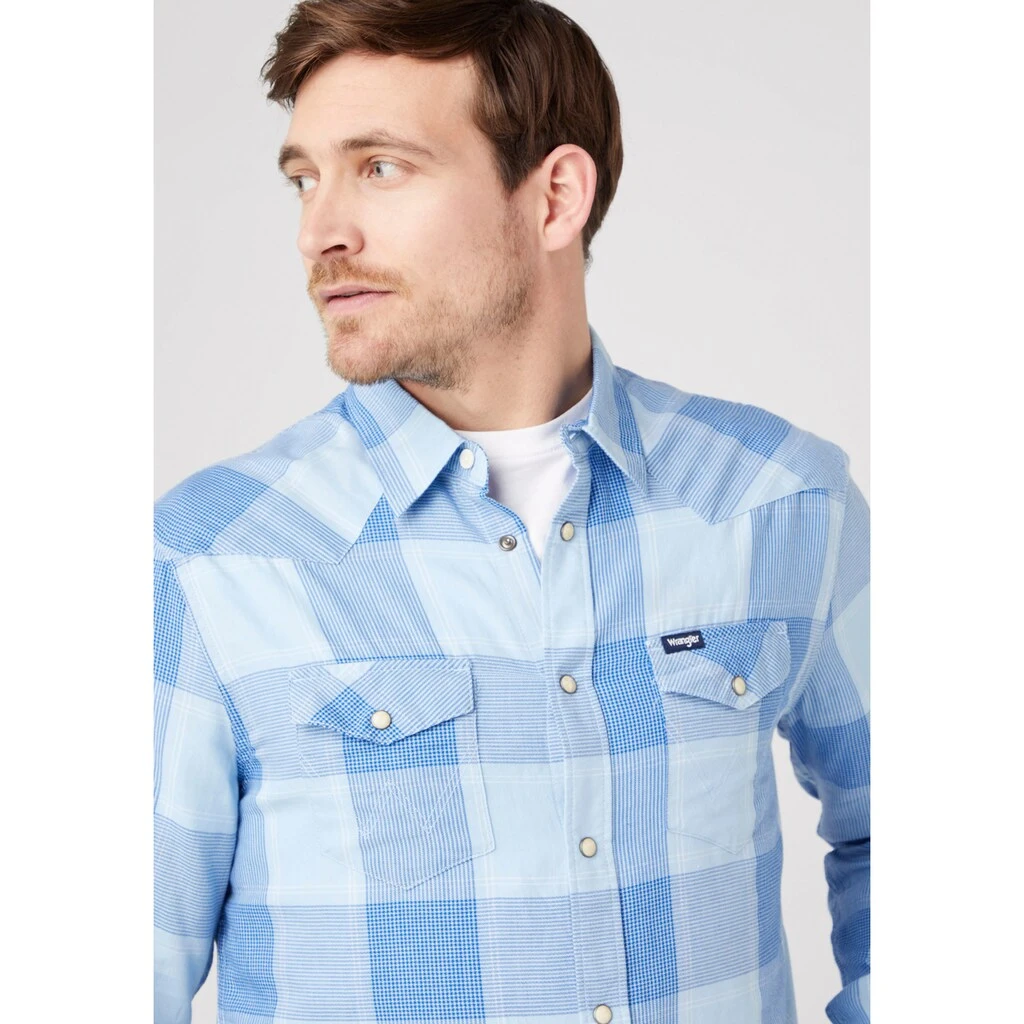 Kombistarkes Langarmhemd für Männer von Wrangler. Abgerundet wird der Look mit Brusttaschen. Kombinierbar für Freizeit und Arbeit. Durch die weiche Baumwolle ist das Oberteil besonders bequem.