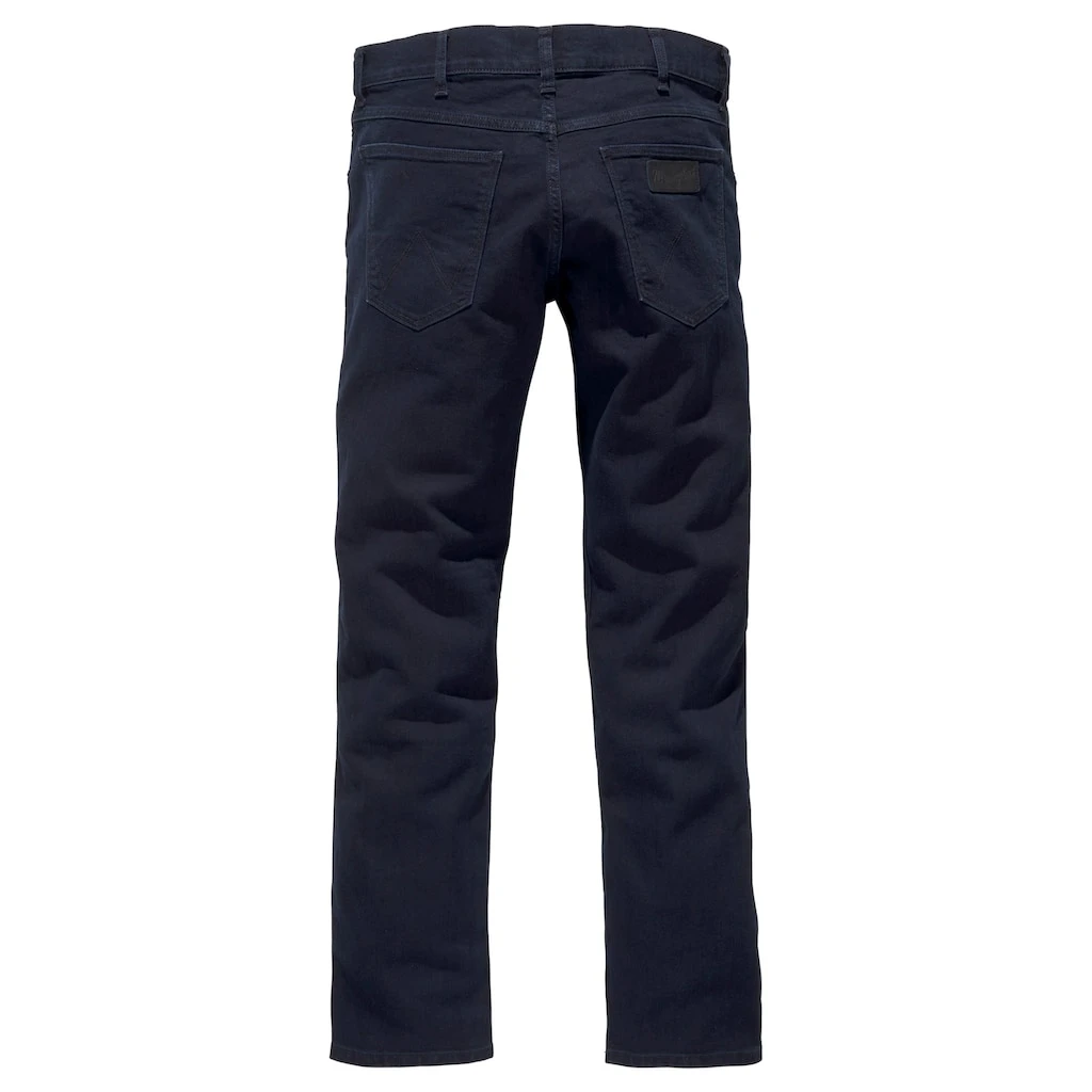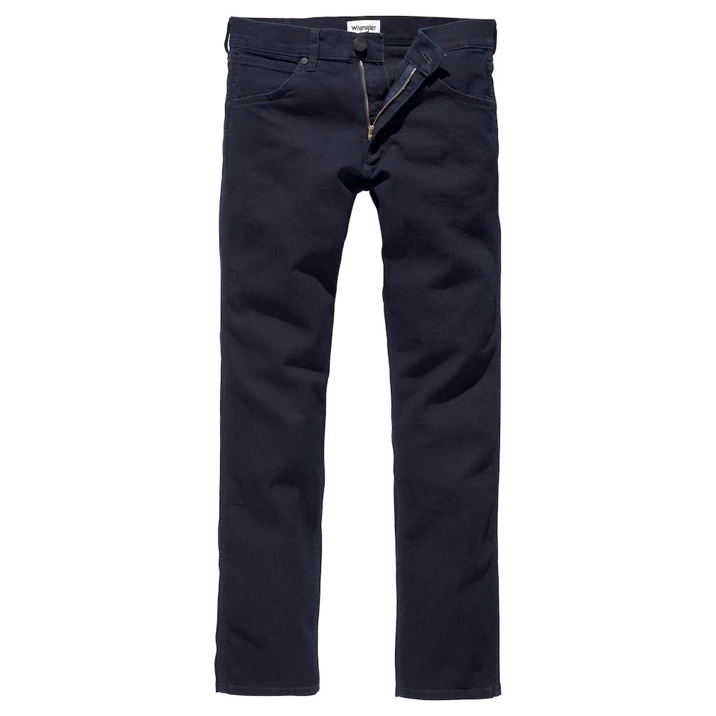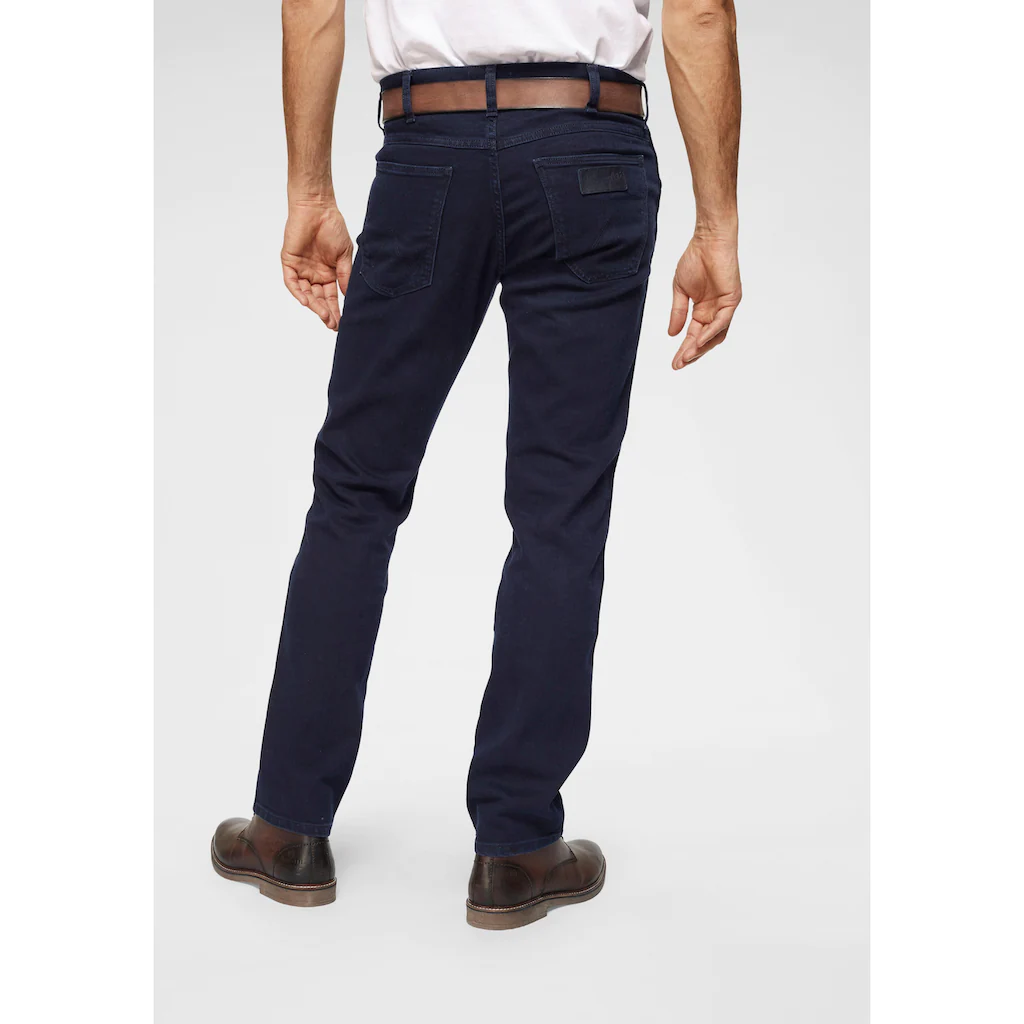 Komfortable Herren-Stretch-Jeans von Wrangler. Klassisch geschnittene Beinform und normale Leibhöhe. Versehen mit einem Ledermarkenlabel. Vielfältig kombinierbar für die Freizeit. Der unempfindliche und robuste Jeansstoff macht die Hose pflegeleicht.