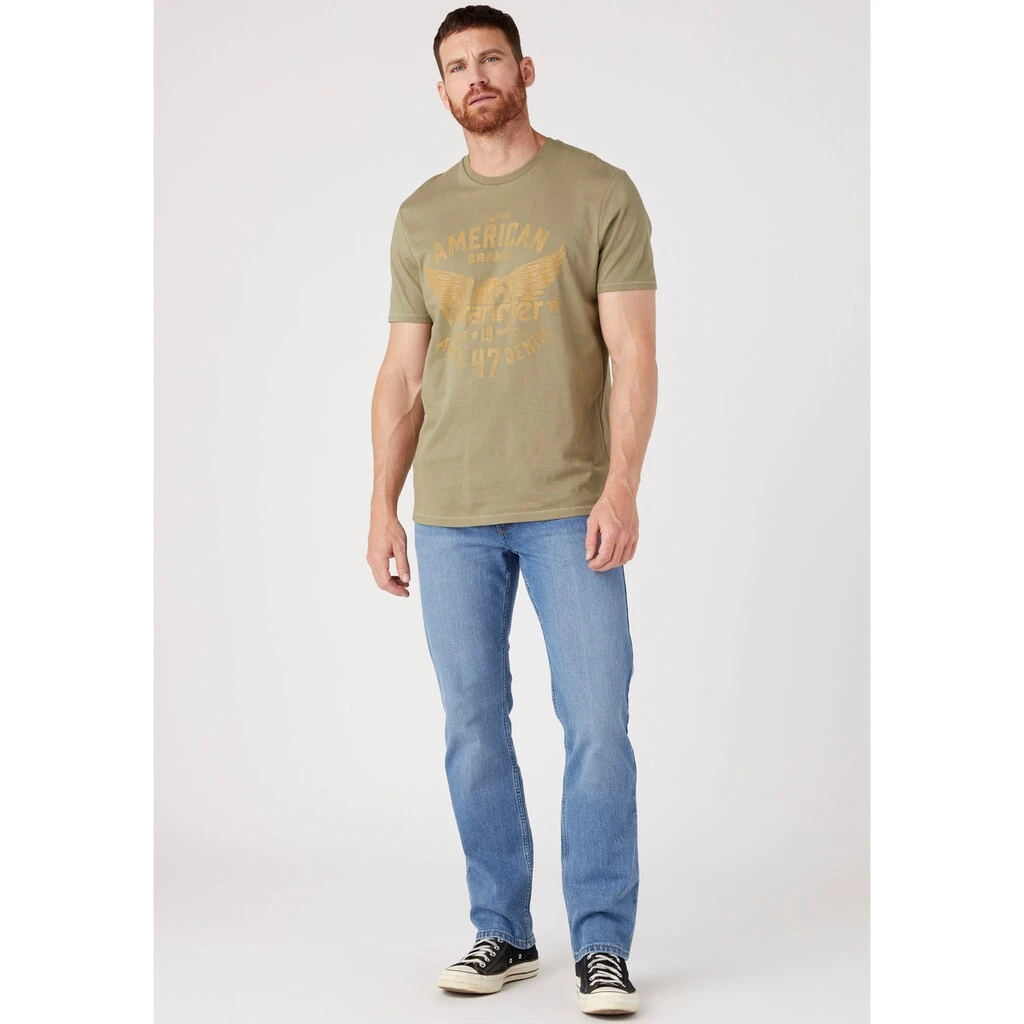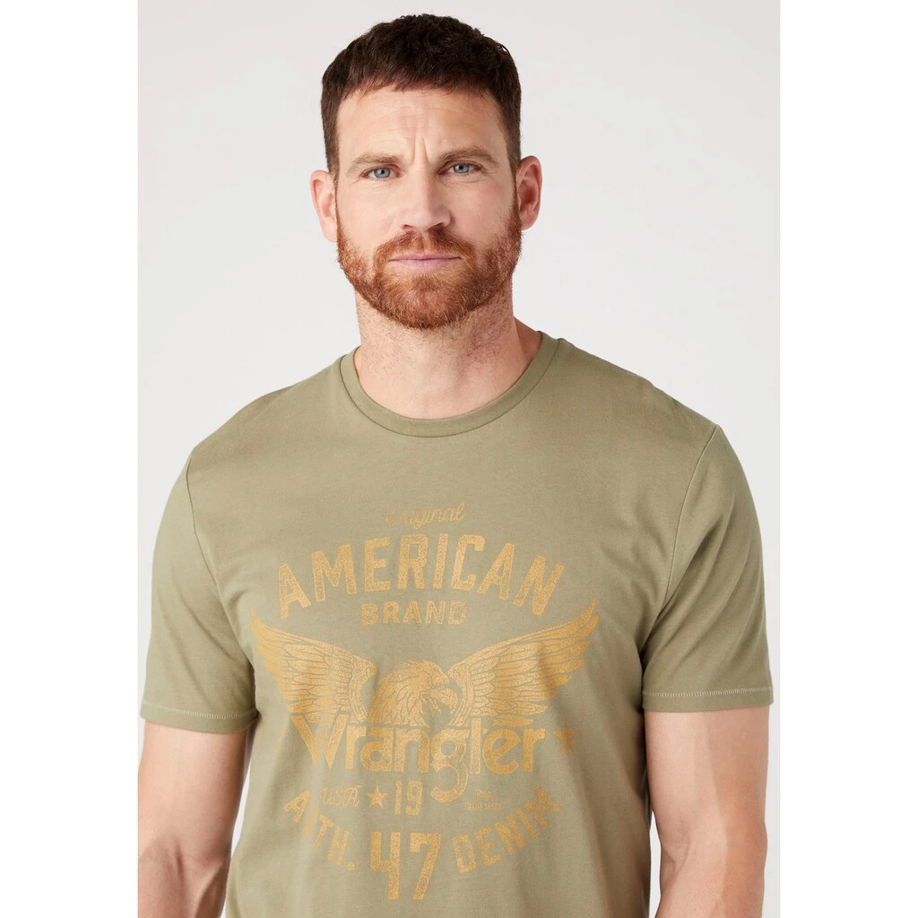 Kombistarkes T-Shirt für Männer von Wrangler. Damit lassen sich gemütliche und stilvolle Looks kreieren. Durch die hautfreundliche und dehnbare Baumwoll-Qualität ist das Oberteil angenehm zu tragen.