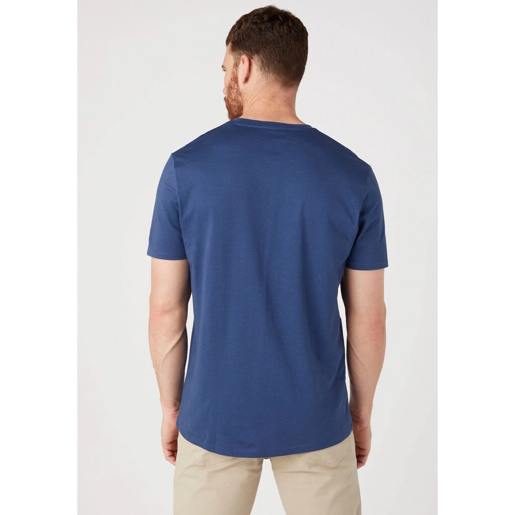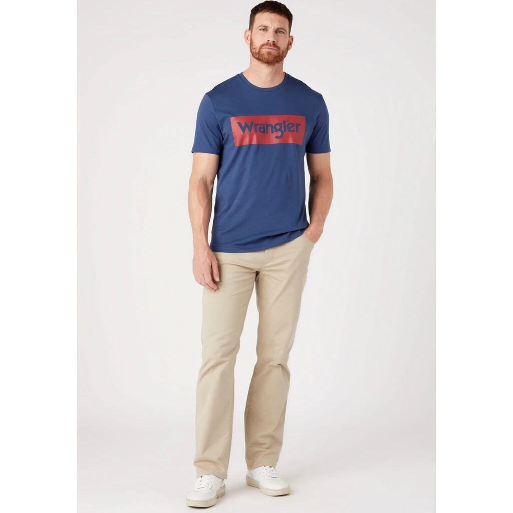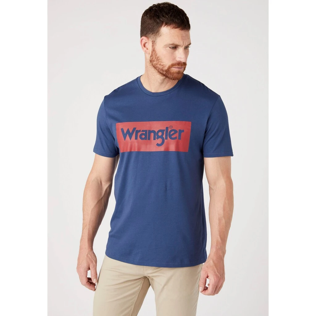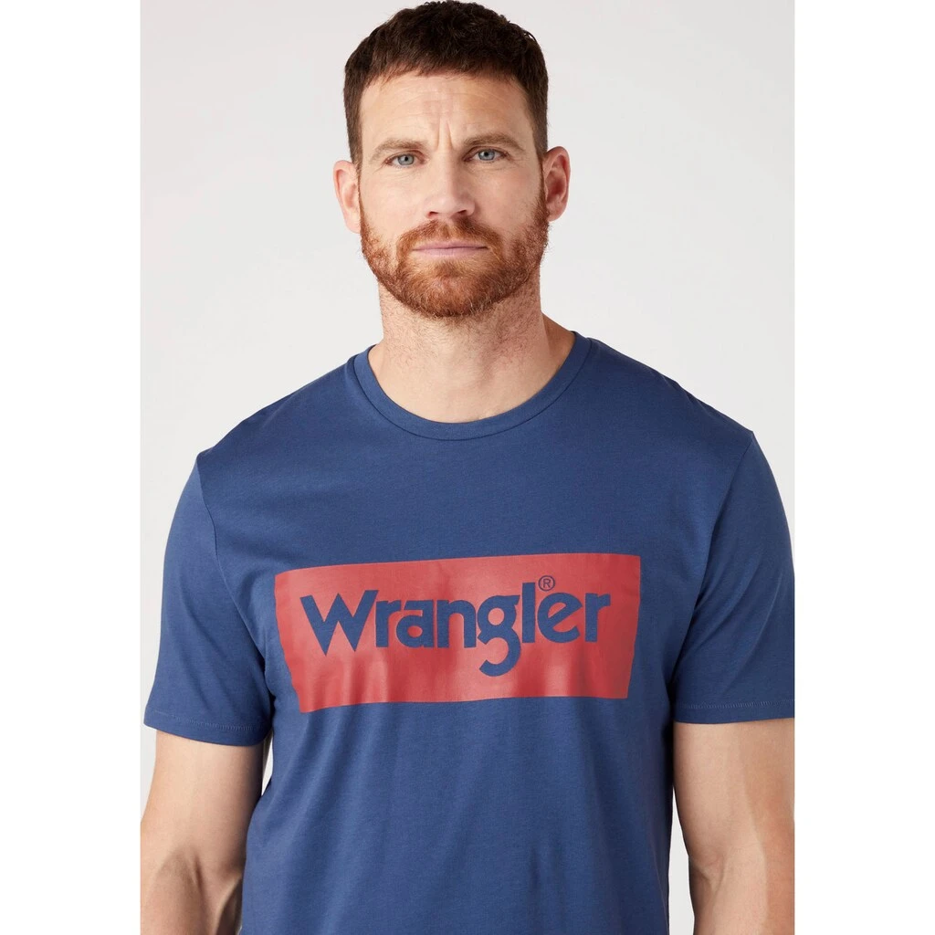 Unkompliziertes Herren-T-Shirt der Marke Wrangler. Mit einem normal breiten Schnitt. Es ist mit einem coolen Logodruck versehen. Durch die weiche Qualität des Single Jerseys ist das Oberteil angenehm zu tragen.